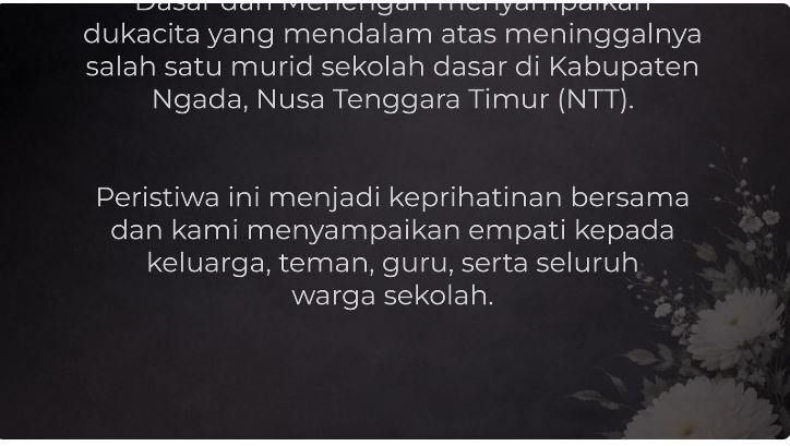 - Kemendikdasmen Turut Berdukacita Atas Wafatnya Murid Sekolah Dasar di Kabupaten Ngada, NTT
